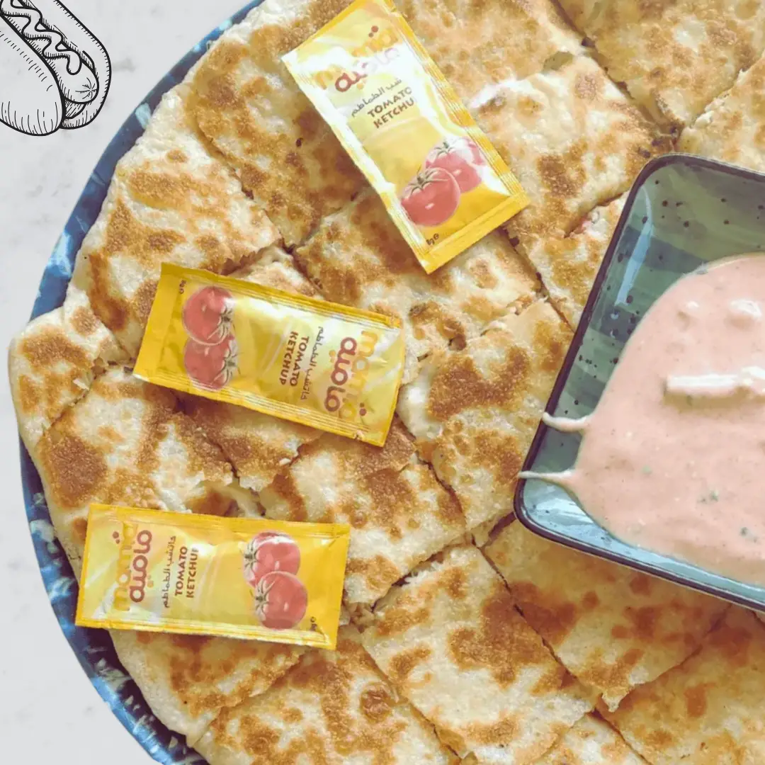 فطيرة كرافت هوت دوق | جبنة الشيدر كرافت مع شرائح الهوت دوق مع الاضافة الي الموزريلا والخضار الفريش
